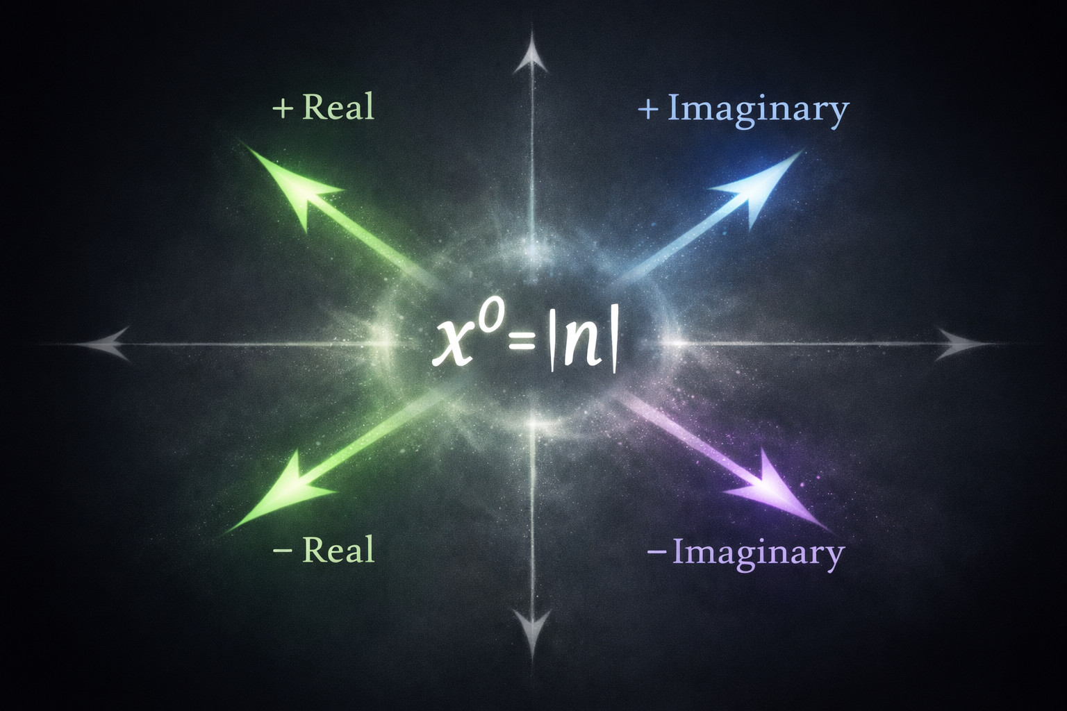 言いかえると、数学の記号は "操作しやすくするためのルール" であって、現実の空間や点の実体とは完全には一致しない。0 という数字の意味も。𝑥^0 も、どこか抽象的な "仮想的存在" として扱うしかない。だから原点は単に "|n|" とすればいい。|𝑥| だと、縦軸を無視して横軸𝑥しか見てない (本来なら4方向あるのに、2方向しか見てない)