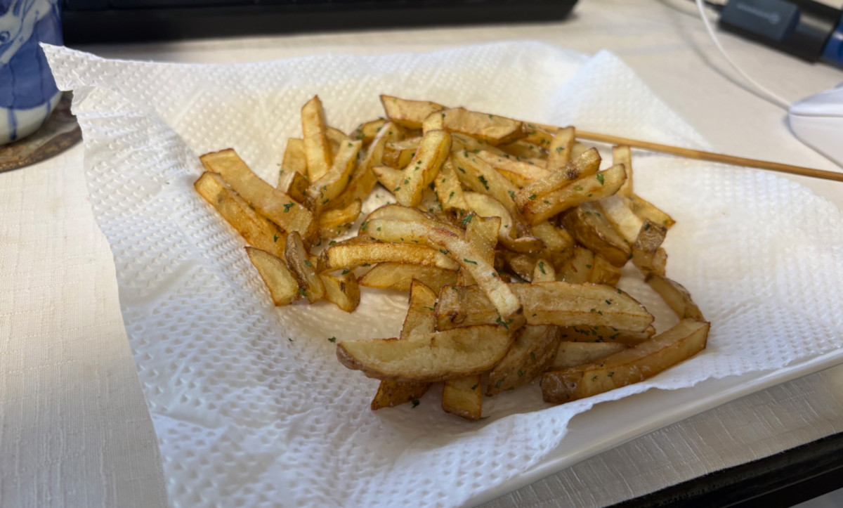 ポテトといえば、自分で揚げるけど… パセリだけもおいしいね ^ ^; 塩分は正直… からい (=_=; 素材がおいしければ調味料要らないね… パセリは調味料じゃないから…