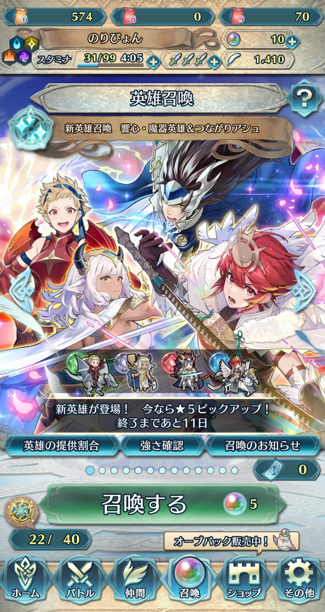 あとガチャ18回… オーブが 80個ぐらい必要です (=_=;