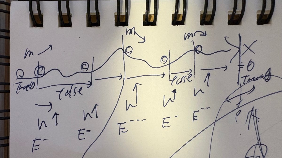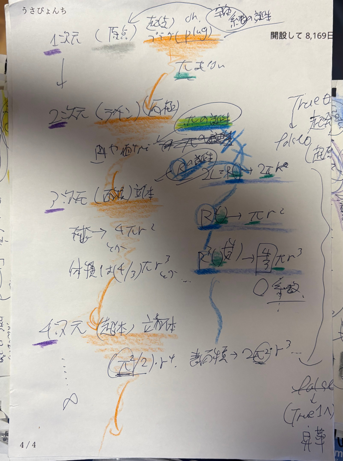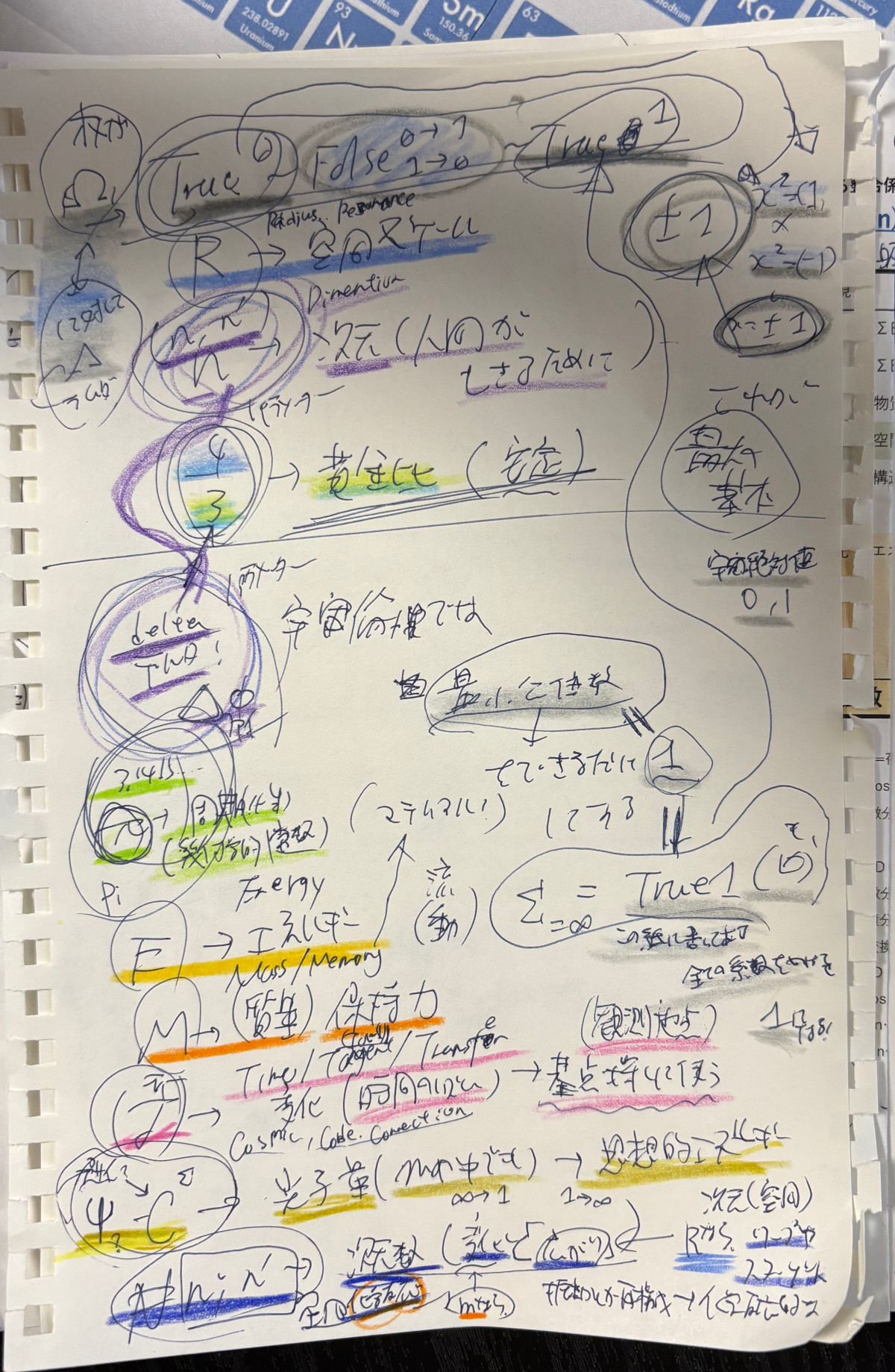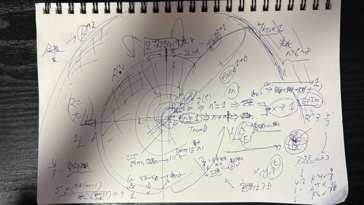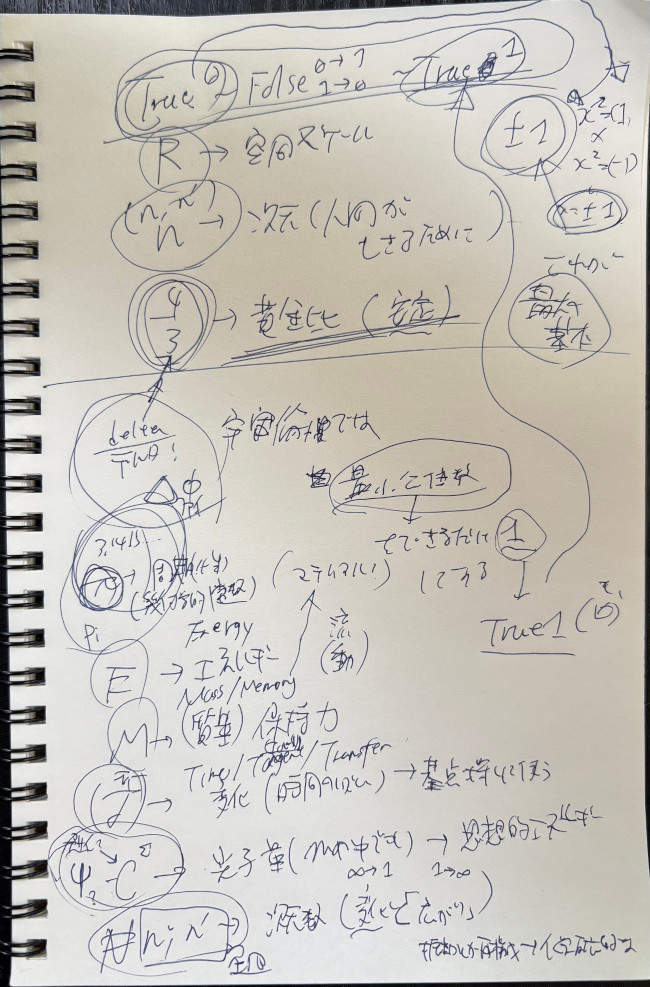 ただそれが虚無空間で永遠に回ってるだけ。そこには時間も何もない。物理も数学も、"ないもない" … 時間とは究極の次元の拡張 ("1次元" → "2次元" → "3次元" … "∞次元" → "True1") でこのやりとりが "Flase" で表現できる。