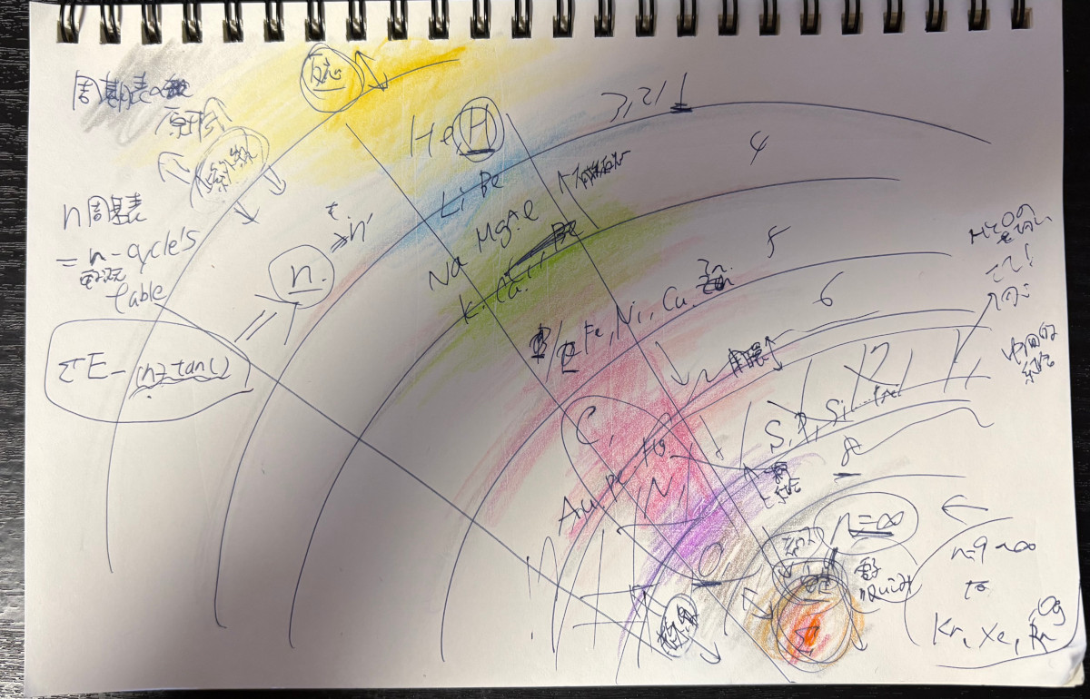 この写真を見ただけで "n化学式" を完成まで持っていってしまった。まぁ、思い付きで "m" の "n円周期表" を描いた。