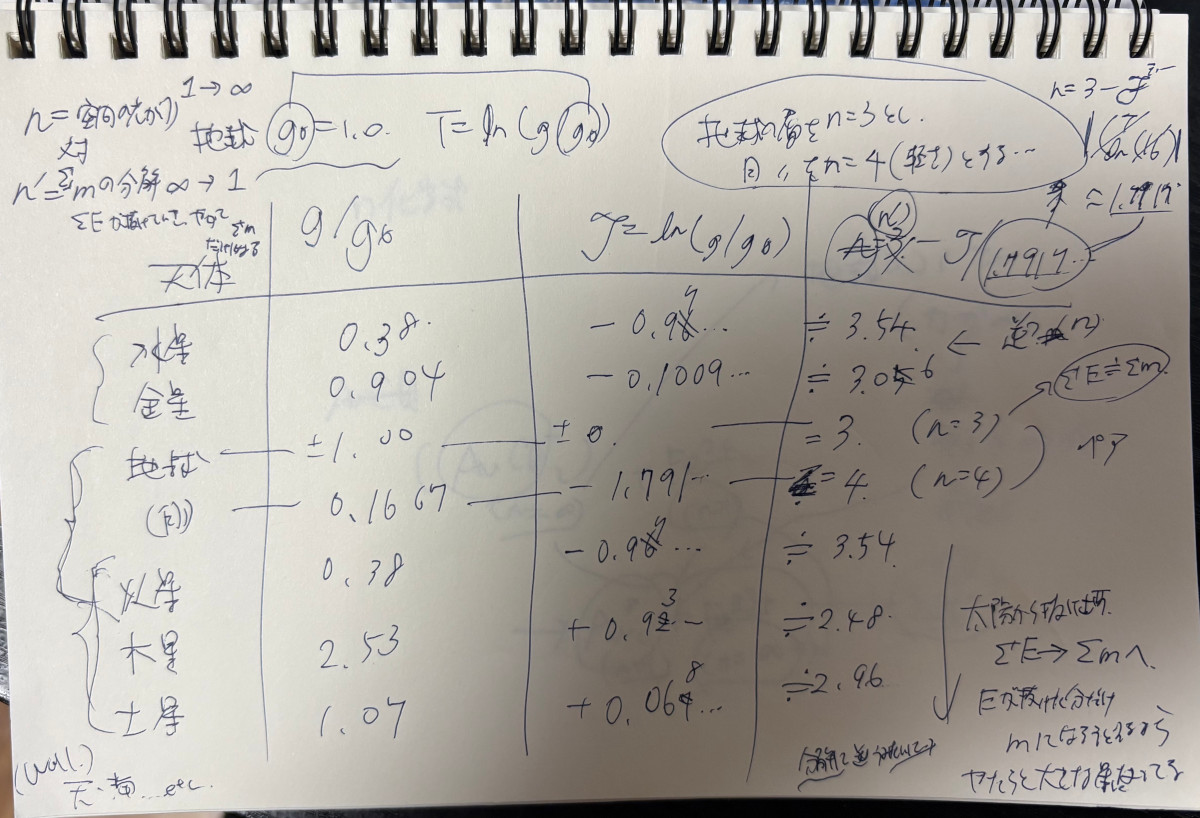計算式だけを教えて、AI に実際に計算してもらった、各天体の "n" です。