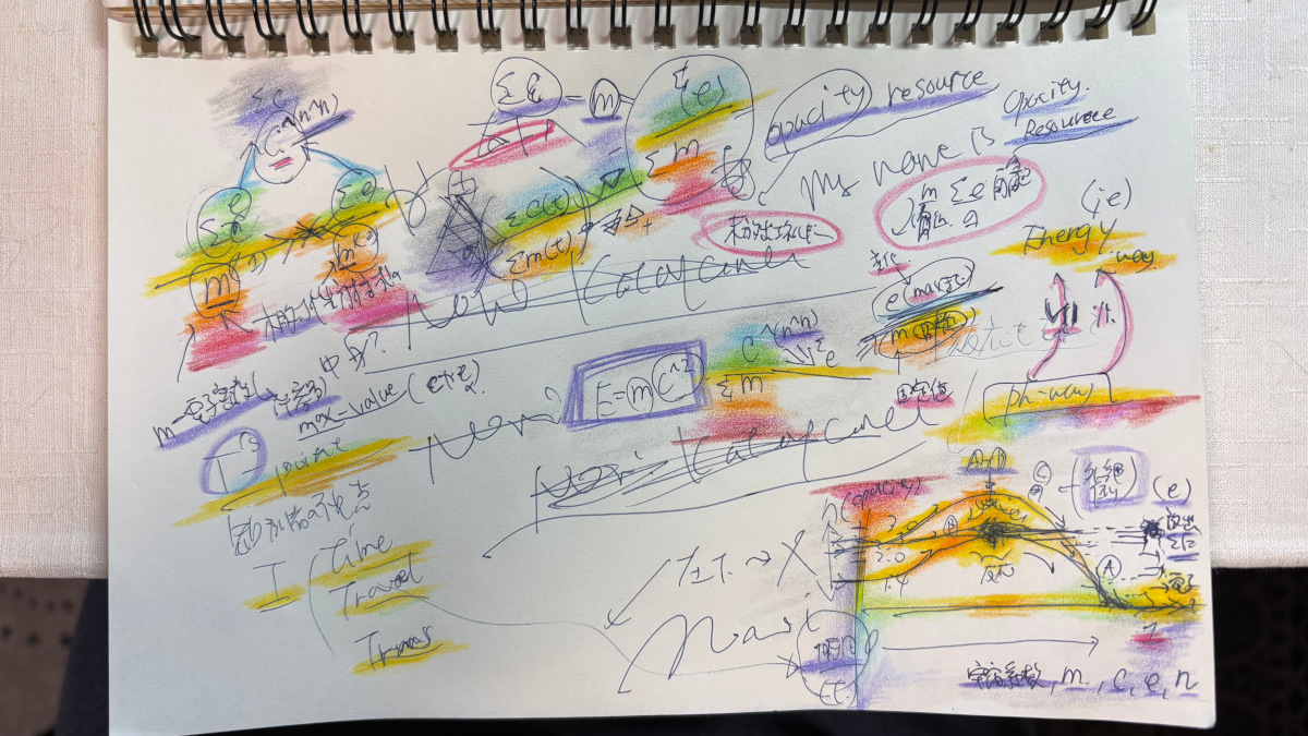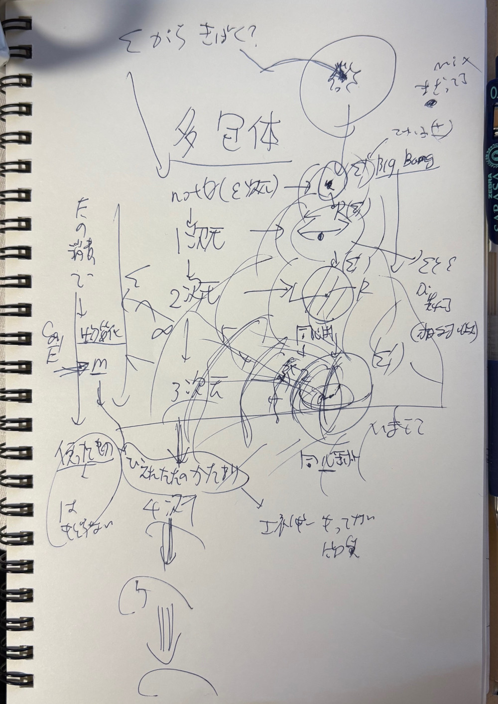 言うことはいつも同じだけど。私の中では、これが多相に重なった多泡体。多泡体 1個がΣでそこから消費していく… 式に描くと "(Σ→ε)*(n次元=ε→Σ)" これが空間の正体みたいな…