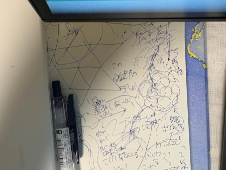 紙にどんどん描きたくなる。謎の記号を作って… ^ ^;;